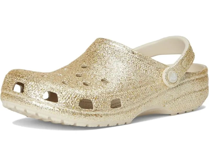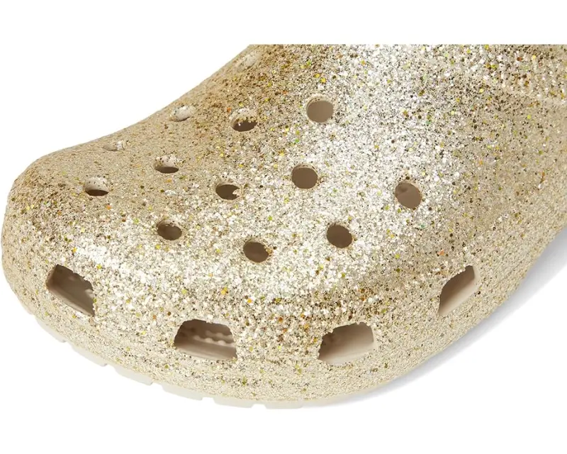 • The iconic clog that started a comfort revolution around the world, now with an adorable all-over glitter treatment! It's the irreverent, go-to comfort shoe that you're sure to fall deeper in love with day after day. Crocs™ Classic Clogs feature lightweight, cushioned construction and offer an ongoing invitation to be comfortable in your own shoes. Sparkle on!