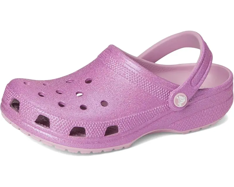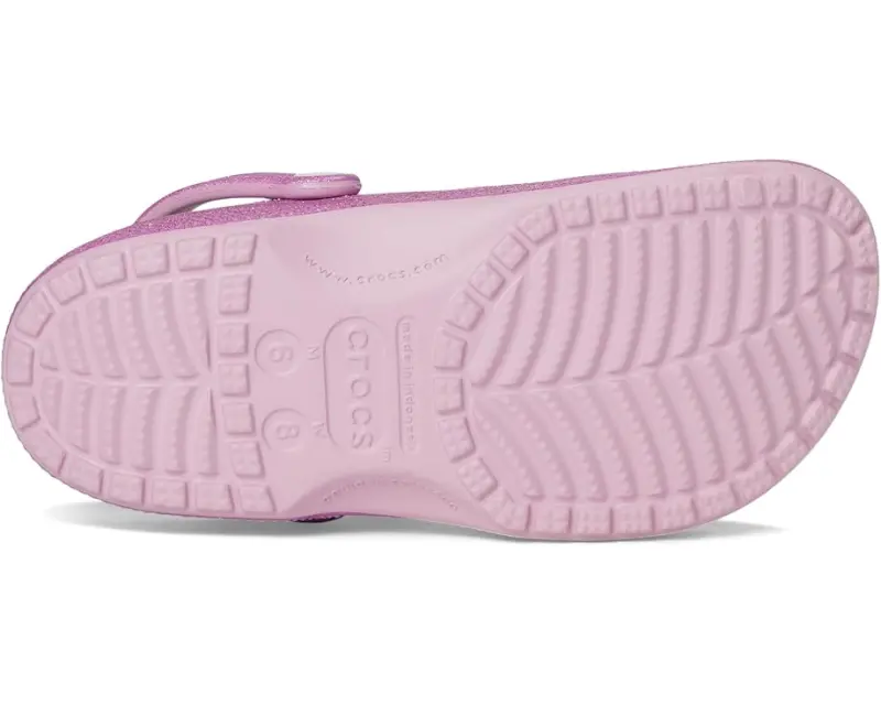 • The iconic clog that started a comfort revolution around the world, now with an adorable all-over glitter treatment! It's the irreverent, go-to comfort shoe that you're sure to fall deeper in love with day after day. Crocs™ Classic Clogs feature lightweight, cushioned construction and offer an ongoing invitation to be comfortable in your own shoes. Sparkle on!