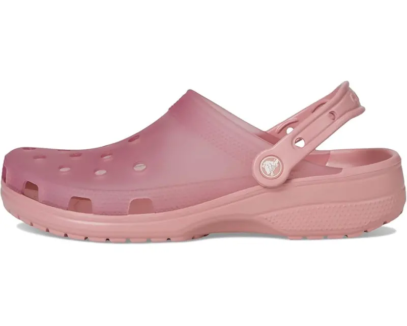 Crocs™ Classic Frosted Clog is an iconic clog that started a comfort revolution around the world! The irreverent go-to comfort shoe that you're sure to fall deeper in love with day after day. It offers lightweight iconic crocs comfort , a color for every personality, and an ongoing invitation to be comfortable in your own shoes. Crafted from EVA upper, and insole, featuring round toe, frosted matte finish adds a stylish touch with subtle color and translucence, provides lightweight, flexible, 360-degree support, and ventilation ports enhance breathability and shed water and debris for all-day comfort.