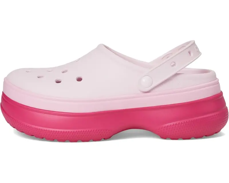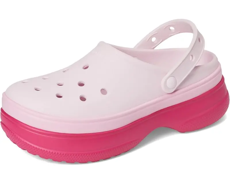 Rise and shine wearing Crocs™ Classic Stacked Clogs Platform are where bold fashion meets legendary comfort. Designed with a sleek EVA upper and a tri-tone banded platform outsole, these unlined slip-ons give your look an instant lift, literally. Lightweight yet eye-catching, they're the perfect pair for styling up everything from streetwear staples to cozy loungewear. The Croslite™ footbed cushions every step, while pivoting heel straps offer a snug, secure fit.