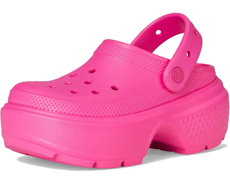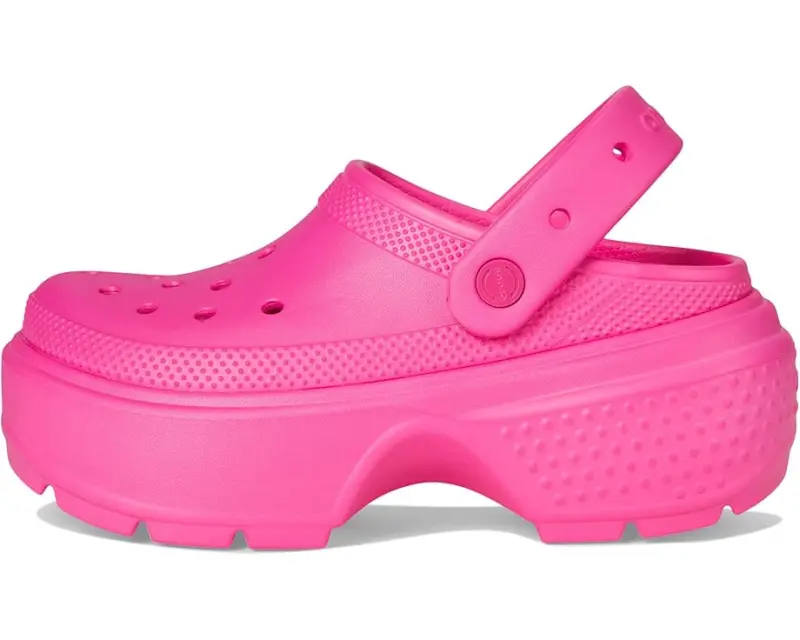 Find your fun and comfort wearing the Crocs™ Stomp Clog. Crafted from EVA upper, this pair of clogs features stylish exaggerated soles, round toe design, and easy slip-on style with back strap. It has ventilation system that allows air and water to pass through multiple ports inside of shoe.